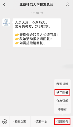 2、个人报名请关注世界杯官网校友总会公众号-我要参与-秩年报名