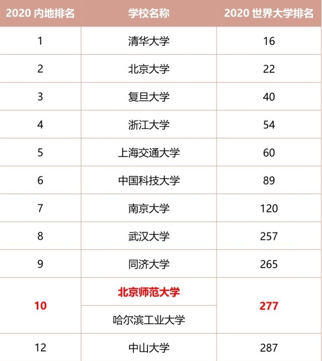 2020QS世界大学排名发布,北师大中国大陆排名第10,世界排名第277