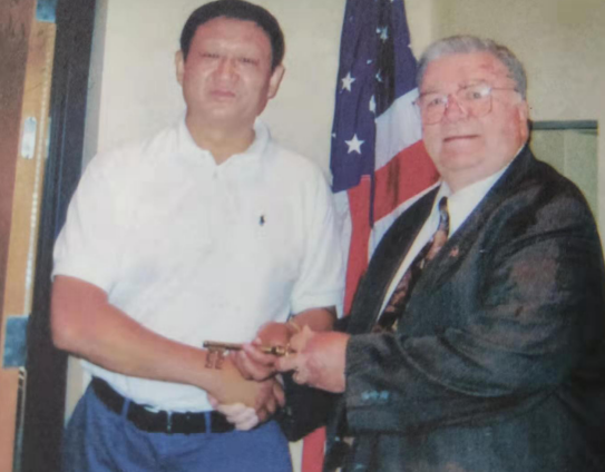 2005年林建学长在美国布兰林市考察期间接受市长赠与的城市金钥匙